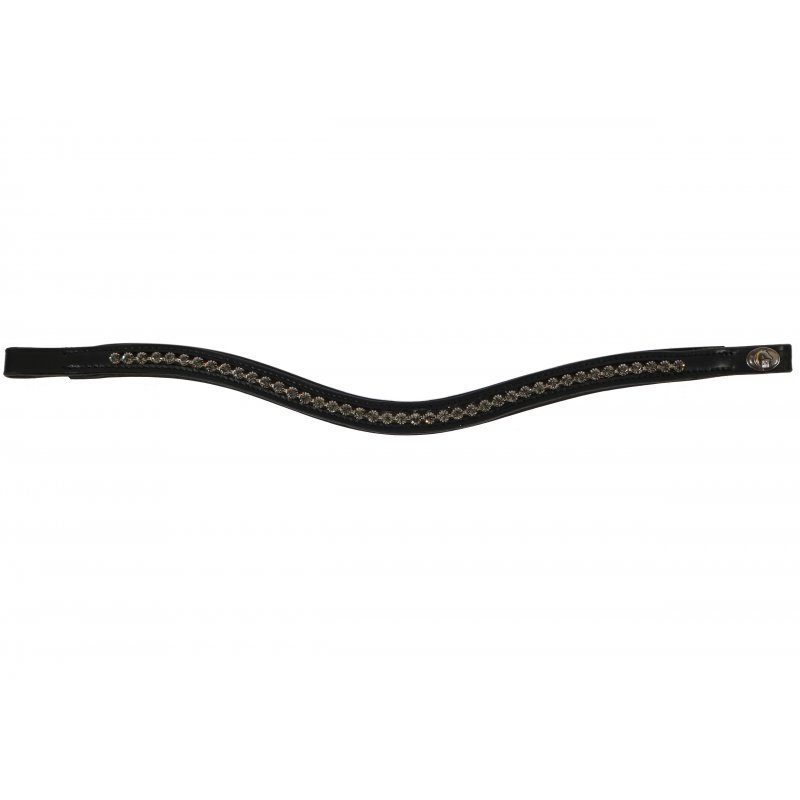 Hans Melzer Stirnriemen Luhmühlen, geschwungen, aus hochwertigem Leder und mit funkelnden Strass-Steinen bestückt. Passend zu jeder Trense. Edles, schwarzes Leder in hochwertiger Verarbeitung. Jetzt hier bestellen!